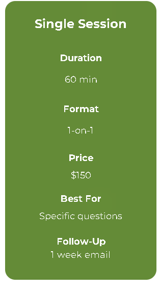 A: Life happens! You can reschedule up to 24 hours before your session through your Calendly confirmation email.