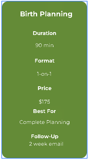 A focused 90-minute session dedicated entirely to creating your personalized birth preferences and preparing for your unique birth experience.